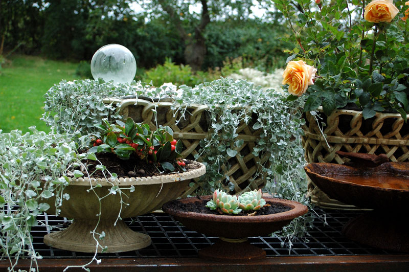 Växterna är ofta enkla, vanliga krukväxter. Här bl