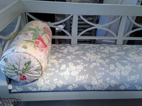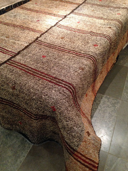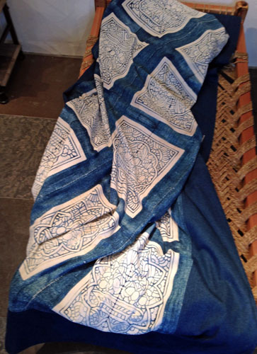 Överkast sytt av ett gammalt kinesiskt tyg och skott med blått kraftigt bomullstyg. Ca 260x260 cm. Nu 2300:- (ordinarie pris 4600:-)