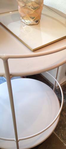 Rullbord från franska Fermob i färg linne. Ljusbricka i emalj med mässingskant