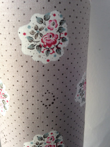 franska tyget Polkaprickig brun och kant i Columbus. Se mer neutrala