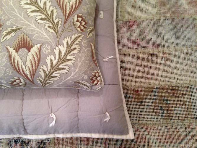 Mullvadsfärgat överkast 180 x 260 (snart i lager igen). Fransk vaxduk med textilkänsla.