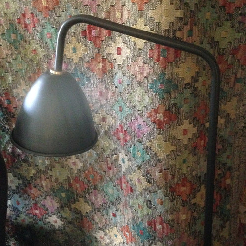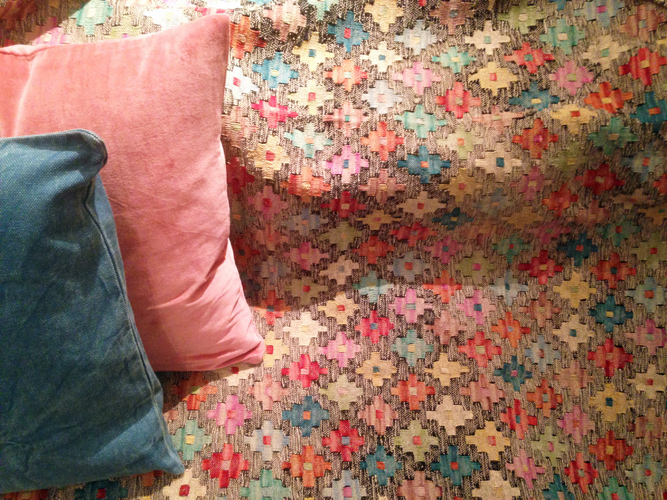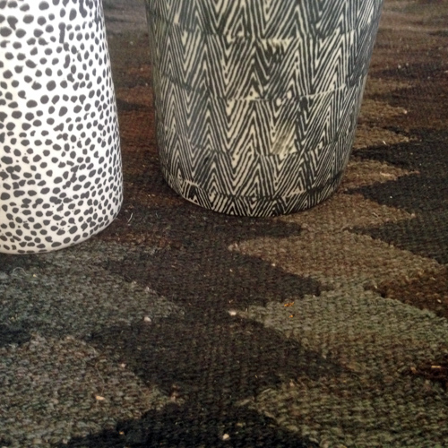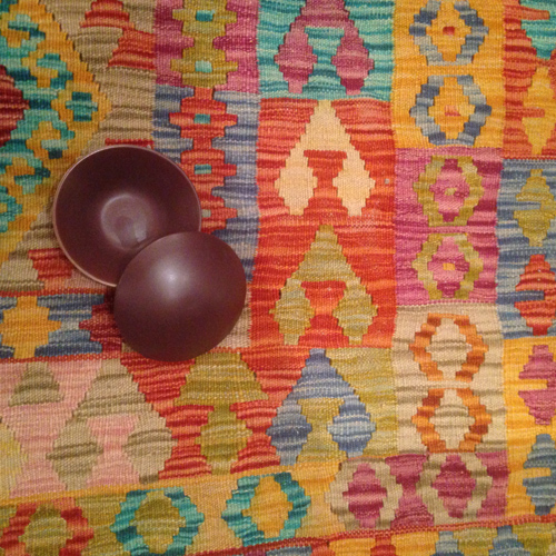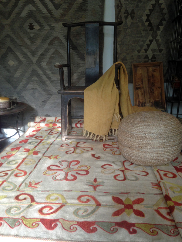 - På väggen ett par nya kelim raw.