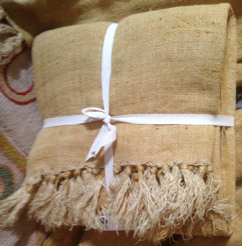 - Stentvättad pläd i blek curry i 100% linne, 130 x 170 cm. Vi har